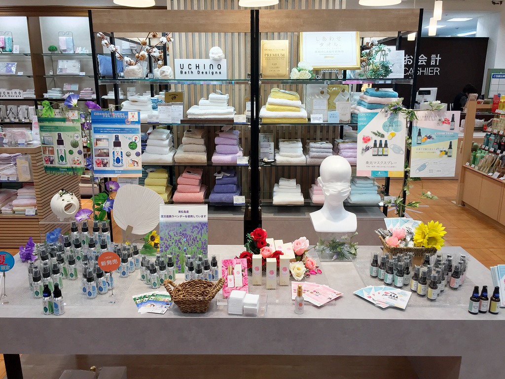定番のマスクスプレーに加え、今回は夏に最適な新商品「東北夏アロマ」2種類の販売も行っております。
